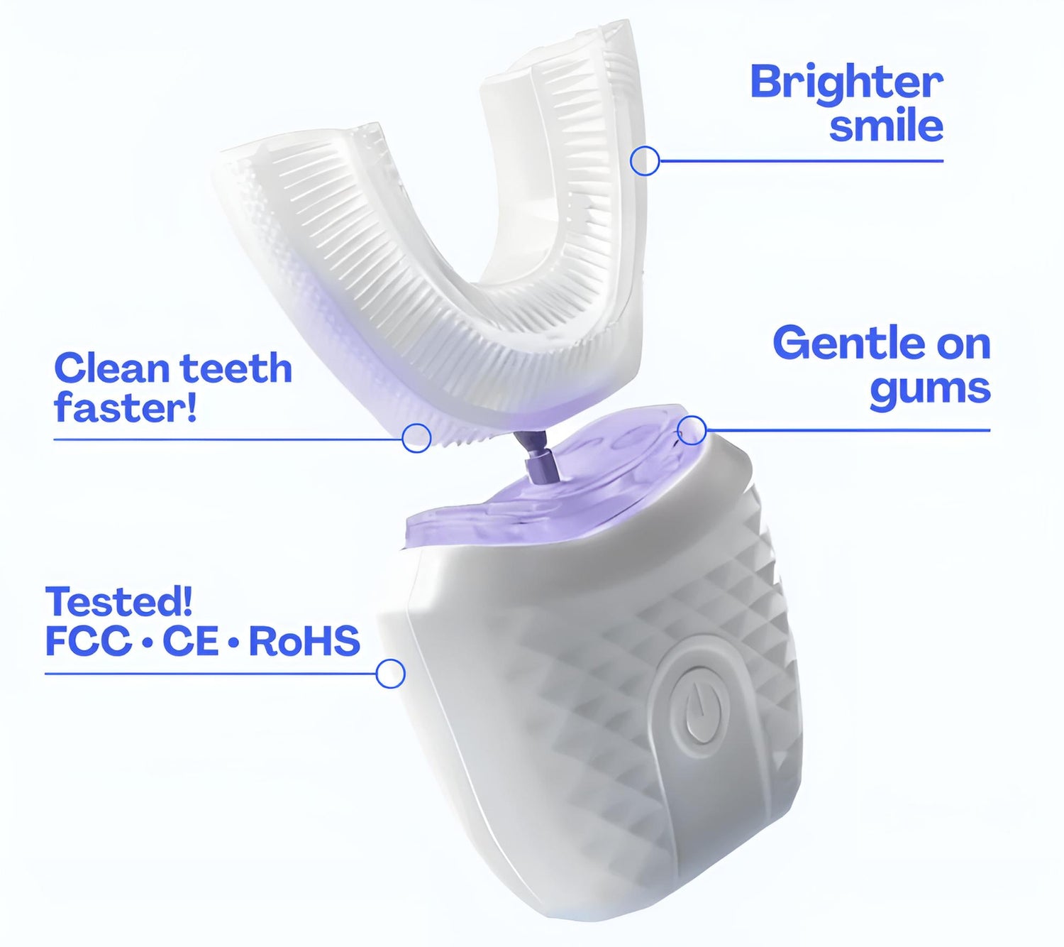 AirBrushâ„¢ uses advanced sonic technology and a U-shaped, BPA-free silicone mouthpiece to clean every tooth at once.