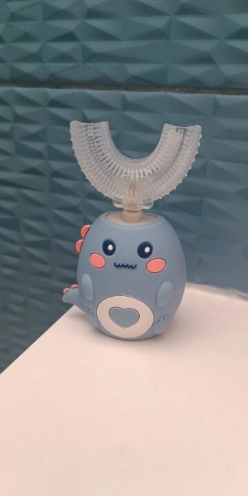 The U-shape head makes brushing fun and easy, while the classic head teaches technique.