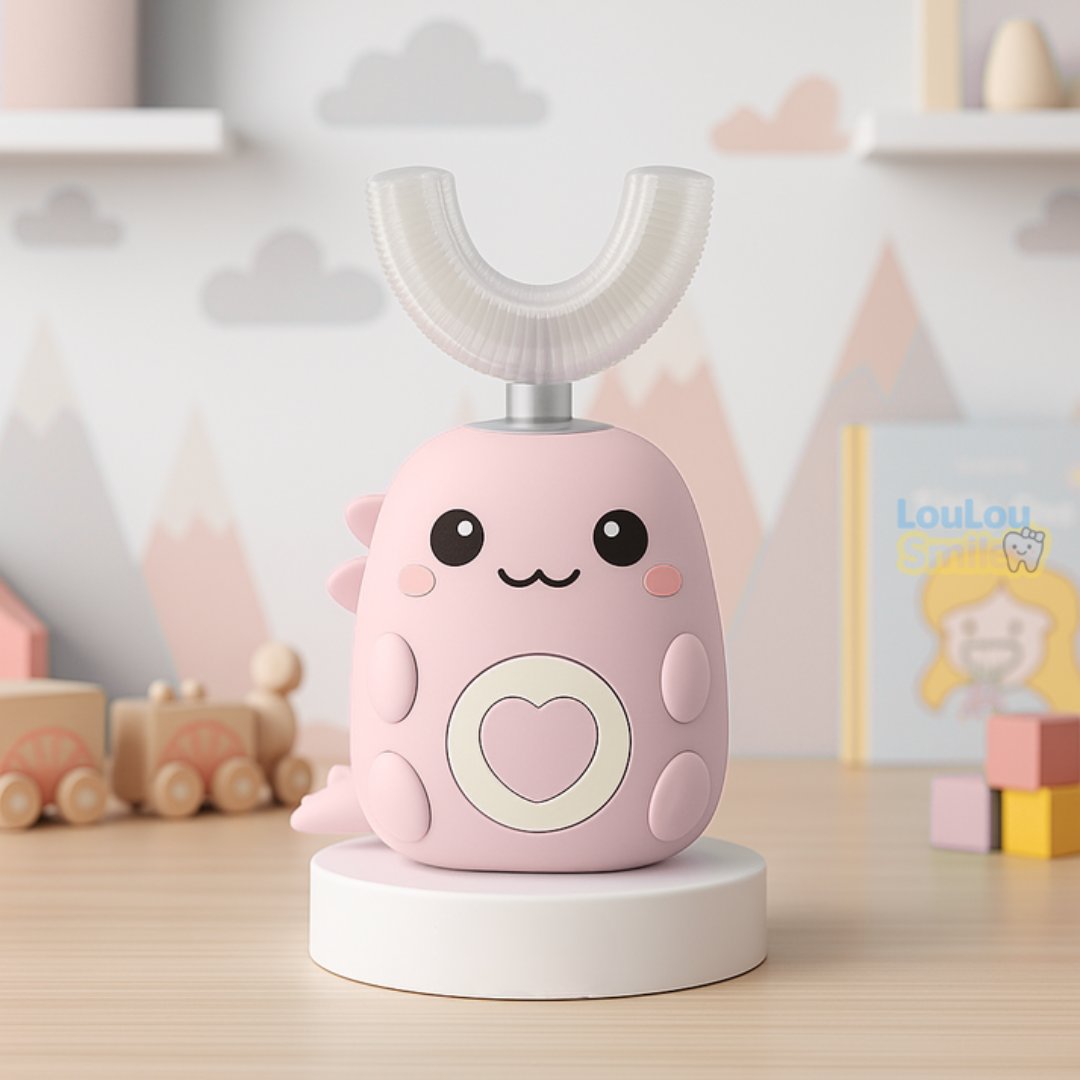 With a soft, silicone mouthpiece and a cute dinosaur design, AirBrush Kids™ is made for tiny hands and even tinier attention spans. In just 60 seconds, it cleans all teeth at once- no drama, no fuss